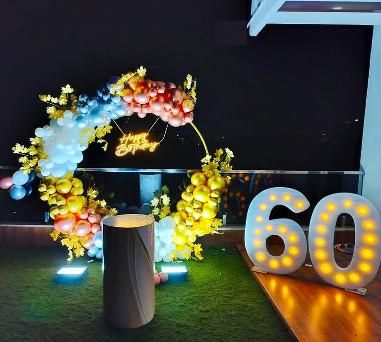 Elegant balloon arrangements for a Birthday Bliss decoration. Make your party look stunning and unforgettable! Transform your celebration into a visual delight with our exquisite decoration.