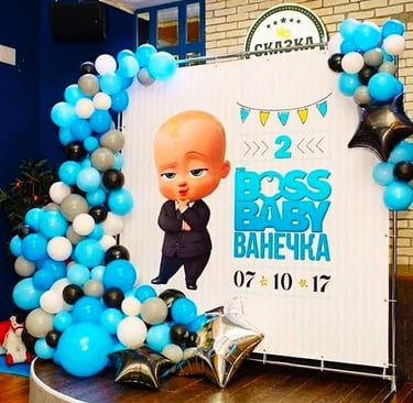 Transform your party with our Boss Baby-themed decorating service! We'll create a whimsical and fun atmosphere with personalized decorations, ensuring your celebration is truly special.