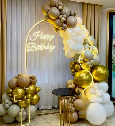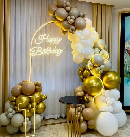 Elevate your birthday celebration with our elegant white and gold balloon arrangement. Sophisticated decor that adds a touch of class to any party!
