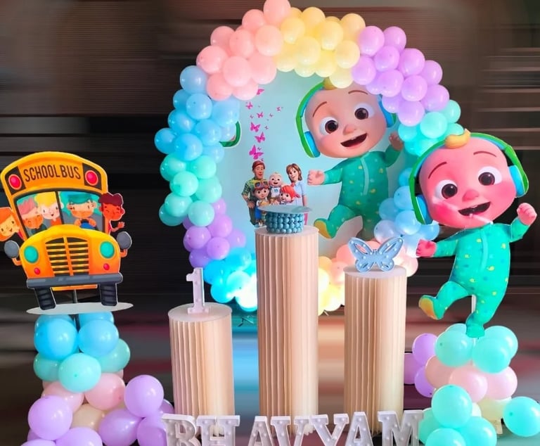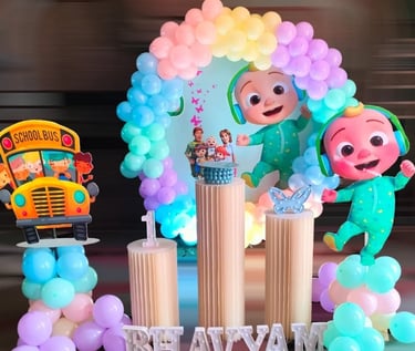 Transform your terrace into a Cocomelon wonderland with our specialized decoration service! Enjoy a vibrant and playful setup that brings your child's favorite show to life in an open-air setting.