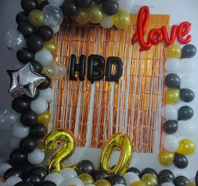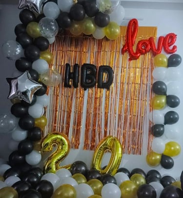 Surprise your special one with white, black & golden balloons beautifully decorated in your party venue to celebrate their special day with elegance.