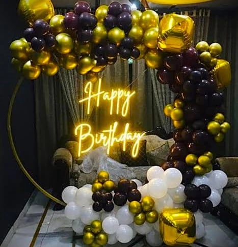 Decorate your venue with classic gold and black balloons arranged in a ring formation. This stunning color combination not only looks fantastic but also adds vibrancy to your selfies, making your event unforgettable.