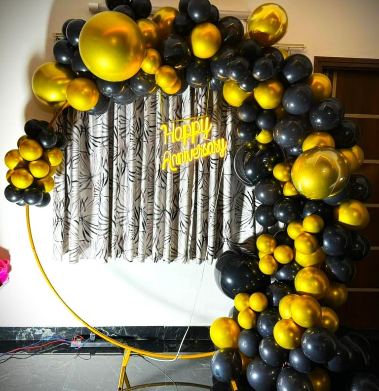 Decorate your venue with classic gold and black balloons arranged in a ring formation. This stunning color combination not only looks fantastic but also adds vibrancy to your selfies, making your event unforgettable.