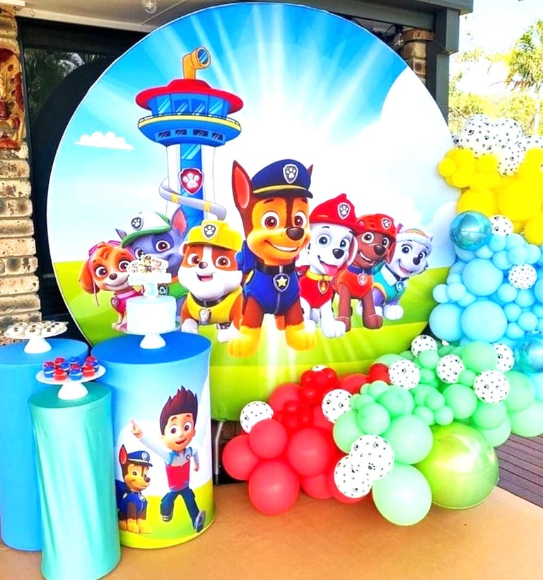 Turn the party into Adventure Bay with Paw Patrol-themed banners, balloons, and tablecloths featuring characters like Chase, Marshall, and Skye.